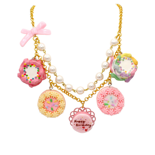 Miniature Birthday Cake Statement Charm Necklace - Gold or Silver Finish - Handmade in the USA