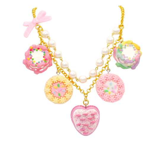 Miniature Cake Statement Charm Necklace - Gold or Silver Finish - Handmade in the USA