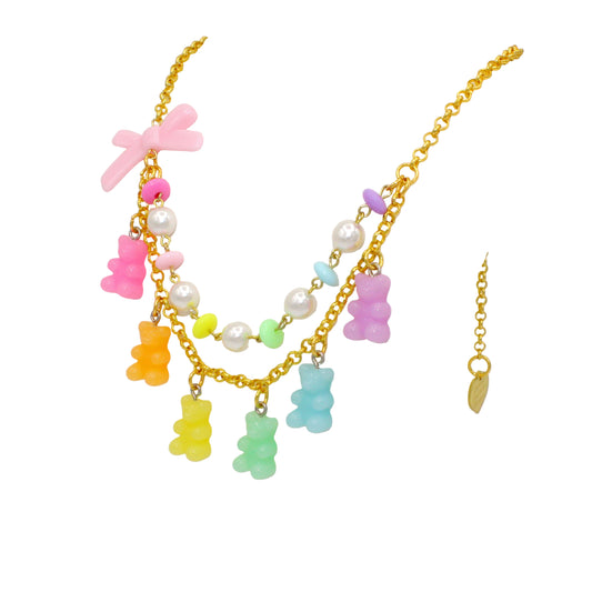 Kawaii Pastel Rainbow Gummy Bear Statement Charm Necklace - Handmade in the USA