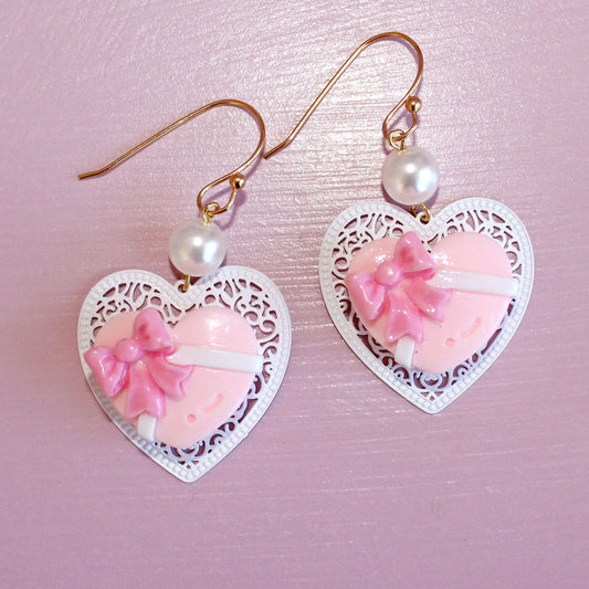 Vintage Heart Chocolate Box Earrings, Valentine's Statement Drop Earrings, Handmade Charm Jewelry