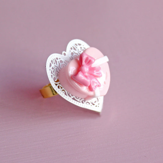 Vintage Pink Heart Chocolate Box Ring, Valentine's Charm Jewelry, Fatally Feminine Designs