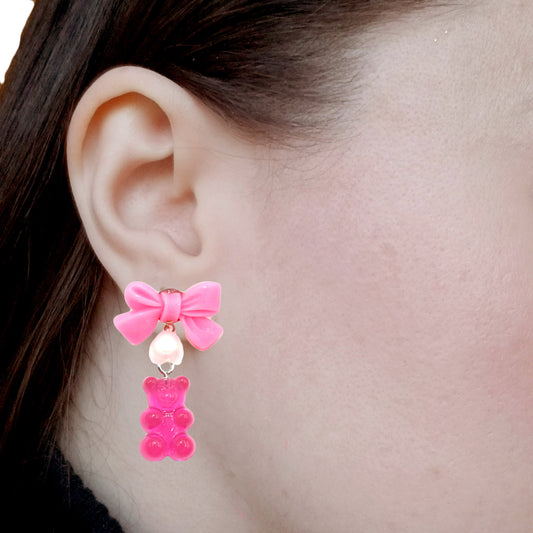 Bow & Pearl Pink Gummy Bear Earrings
