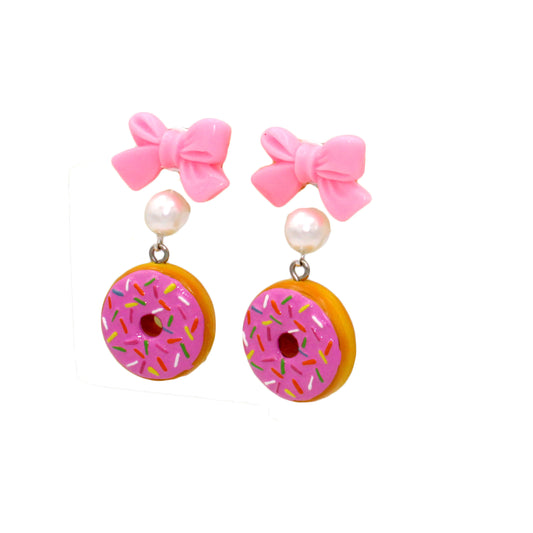 Bow and Pearl Pink Donut Earrings