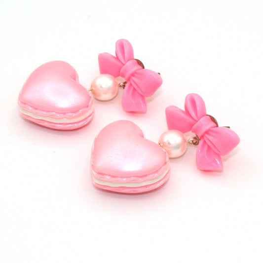 Bow and Pearl Macaron Heart Earrings - Valentines Day