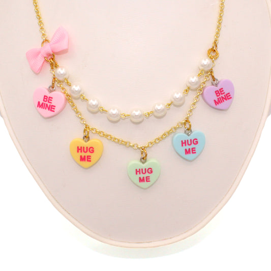 Kawaii Conversation Heart Statement Necklace - Valentine's Day Charm Jewelry - Fatally Feminine Designs
