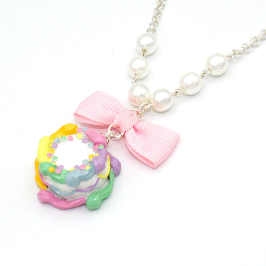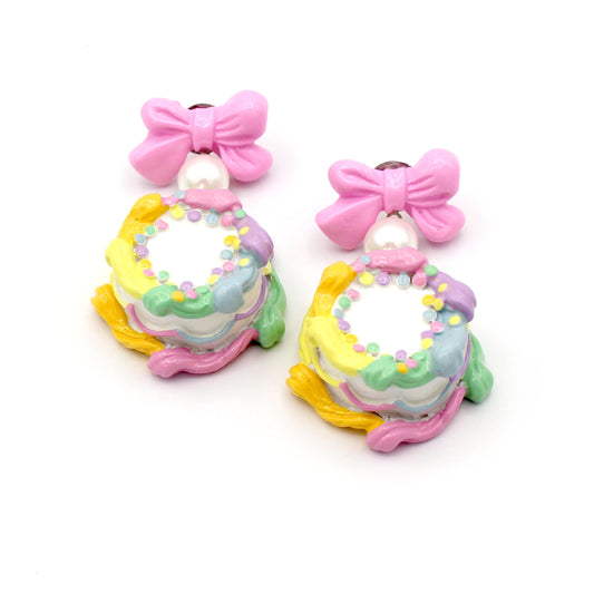 Pastel Rainbow Birthday Cake Bow and Pearl Earrings