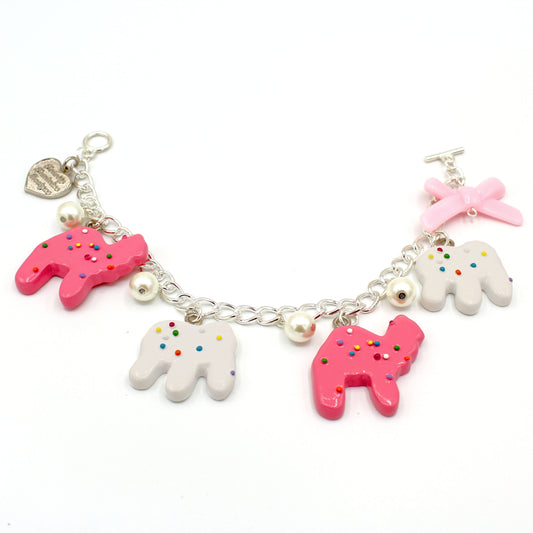 Pink Frosted Circus Animal Chunky Charm Bracelet Gold or Silver
