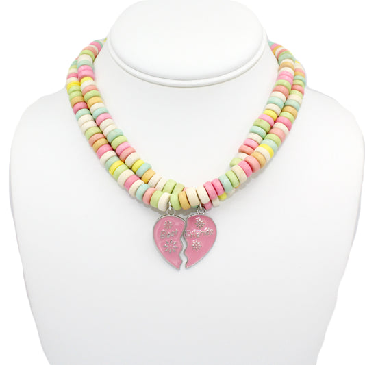 Best Friends Necklace Set Pastel Rainbow Faux Candy Chokers Handmade Gift for BFF