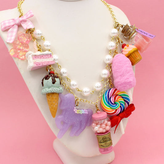Kawaii Pink Candy Shop Statement Charm Necklace - Gold or Silver