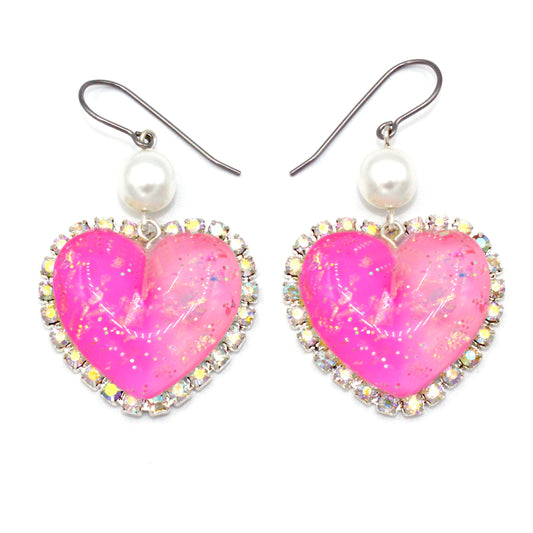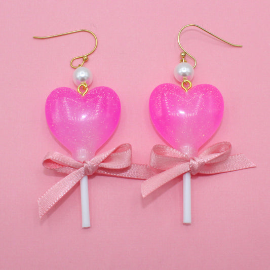 Hot Pink Heart Lollipop Earrings - Gold or Silver - Fatally Feminine Designs