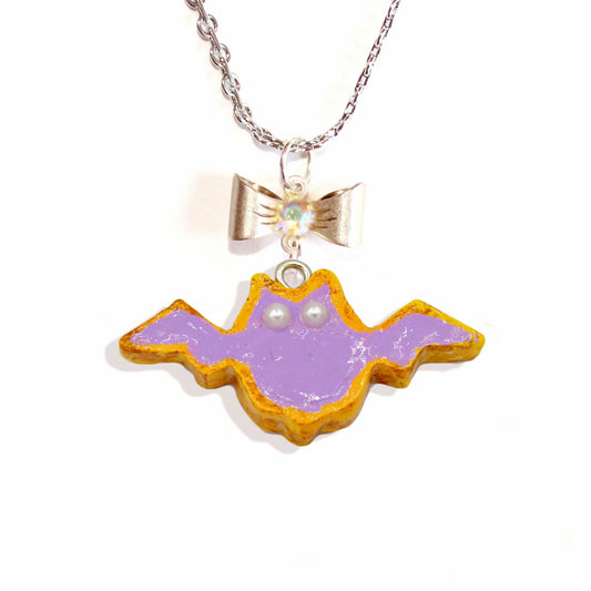 Purple Pastel Bat Cookie Pendant Necklace Gold or Silver Cute Autumn Charm Jewelry Handmade Fatally Feminine Designs