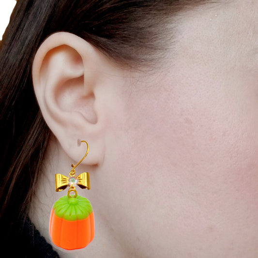 Autumn Drop Earrings Orange Pumpkin Candy Corn Gold or Silver Fatally Feminine Designs