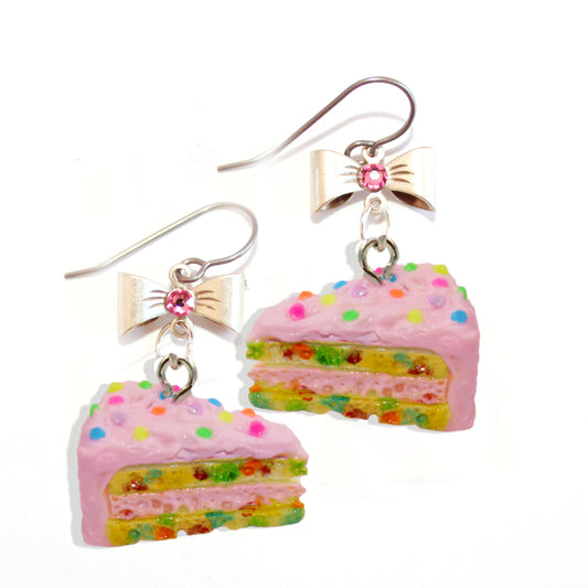 Pink Confetti Cake Earring & Necklace Set, Funfetti Birthday Cake Charm Jewelry