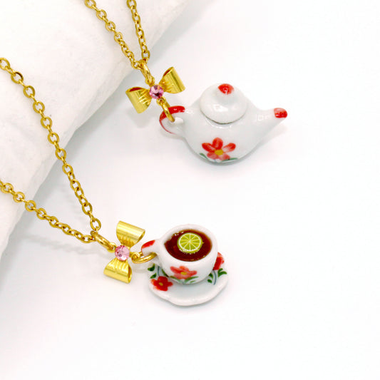Pink Victorian Tiny Tea Cup or Teapot Necklace, Gold or Silver, Hypoallergenic - High Tea Collection - Fatally Feminine Designs
