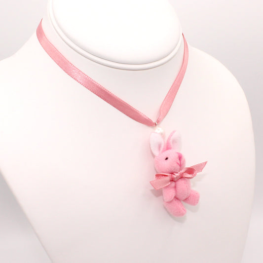Pastel Bunny Satin Choker or Necklace - Pink or White Plush Bunny - Fatally Feminine Designs