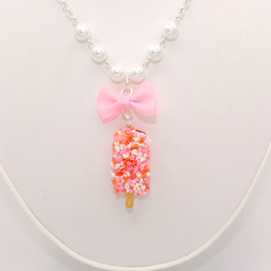 Strawberry Shortcake Bar Pearl & Bow Necklace - Gold or Silver