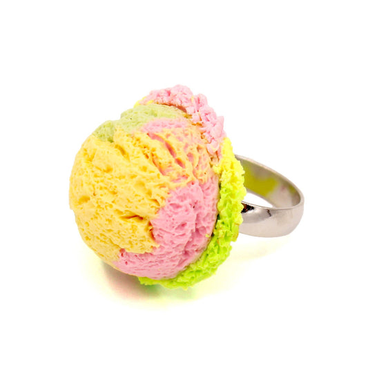Kawaii Pastel Rainbow Ice Cream Ring - Gold or Silver Adjustable - Fatally Feminine Designs