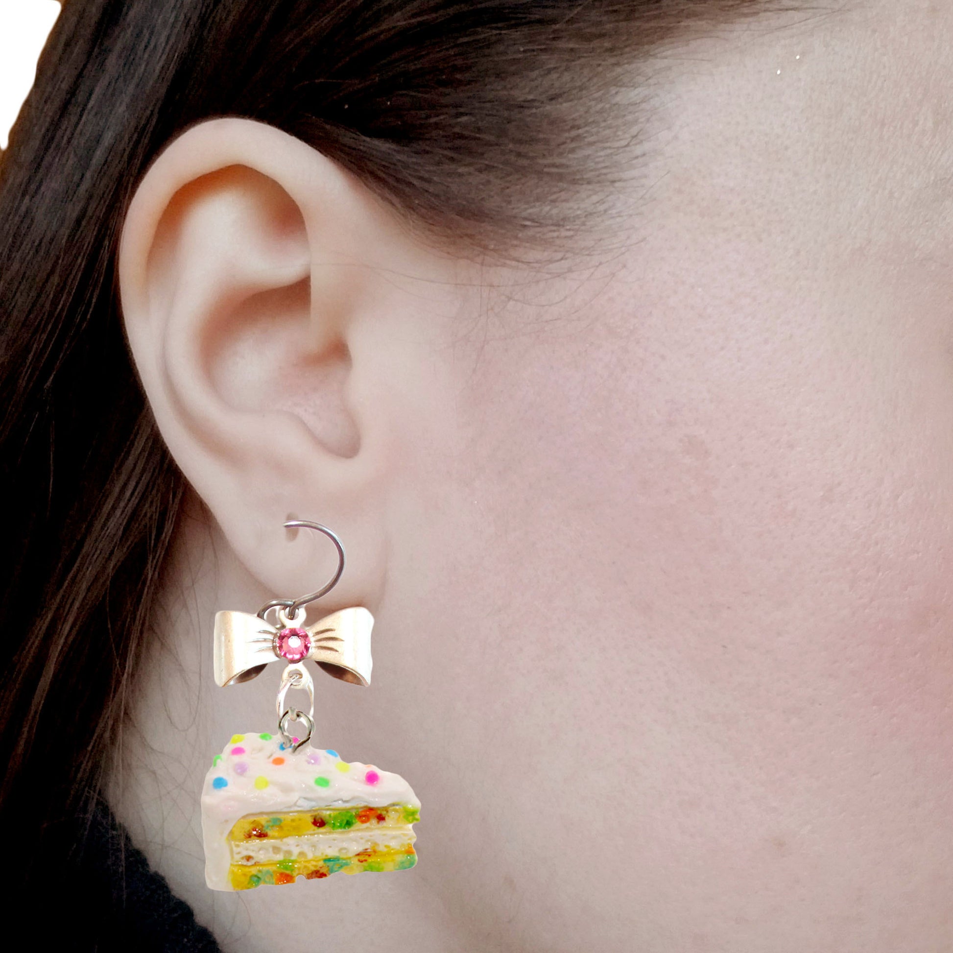Confetti Cake Earrings, Funfetti Birthday Cake Slice Charm Earrings