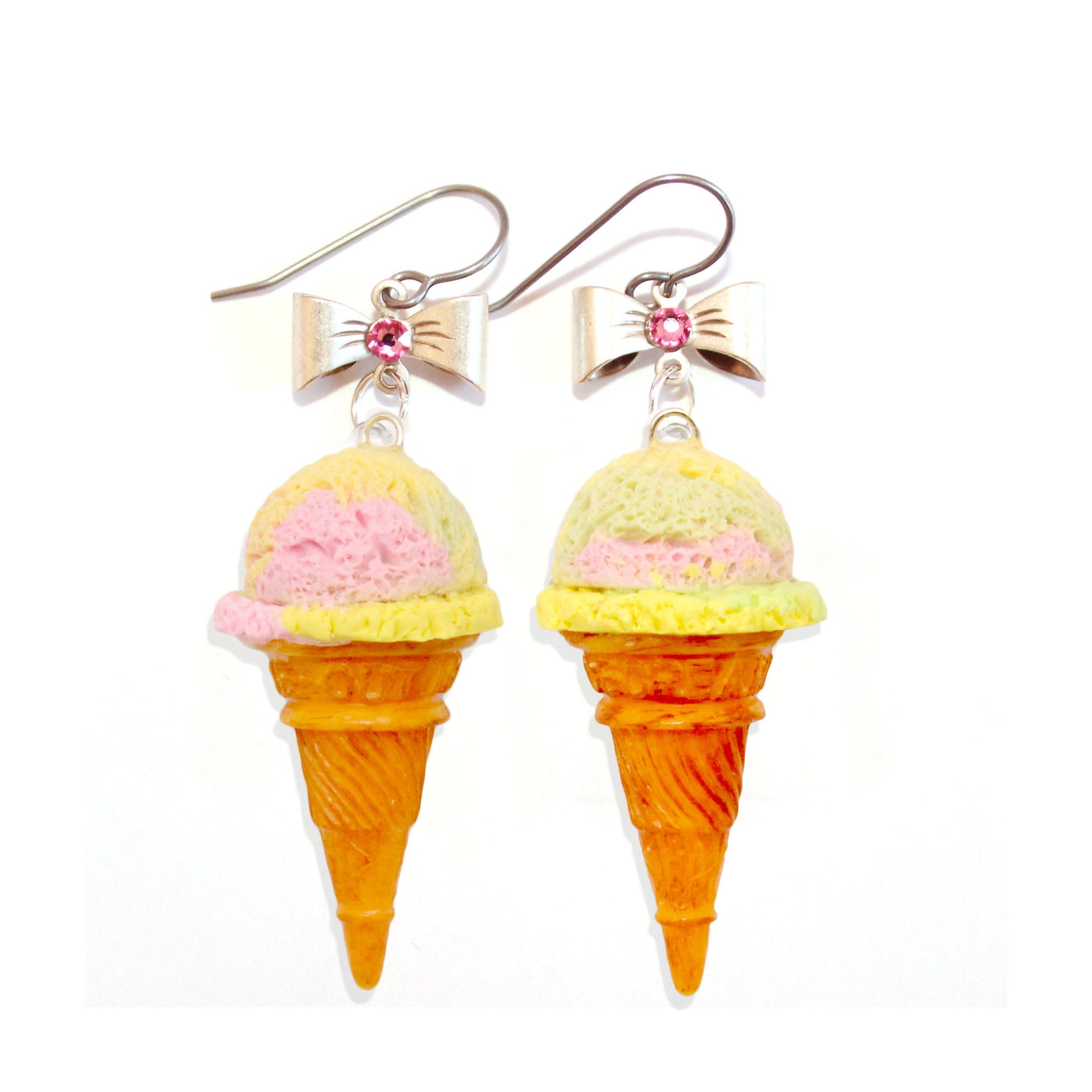 Pastel Rainbow Ice Cream Cone Earrings - Hypoallergenic Option - Fatally Feminine Designs