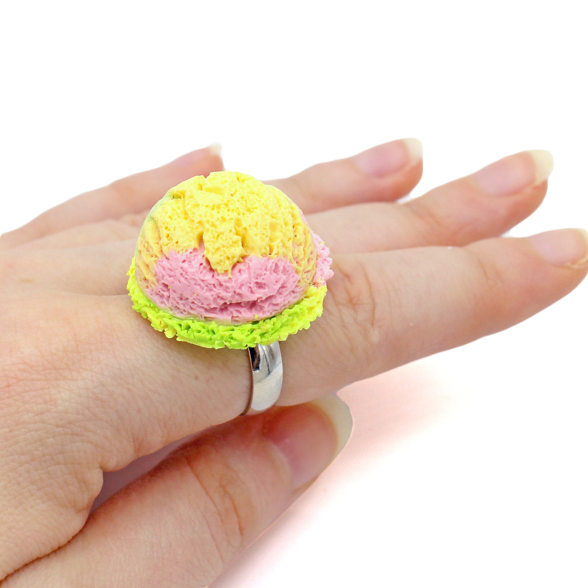 Kawaii Pastel Rainbow Ice Cream Ring - Gold or Silver Adjustable - Fatally Feminine Designs
