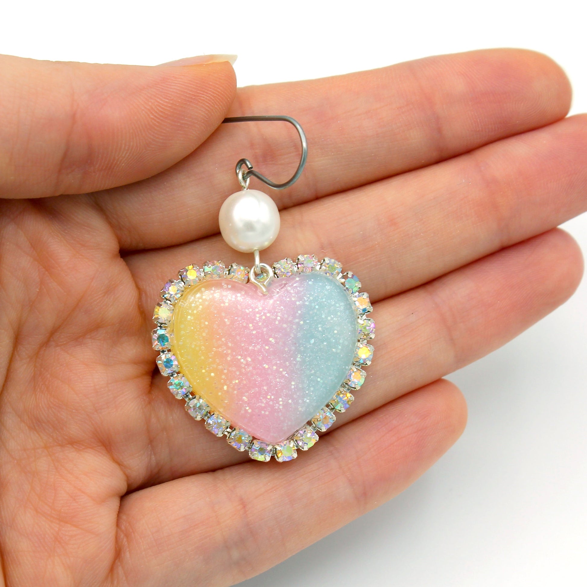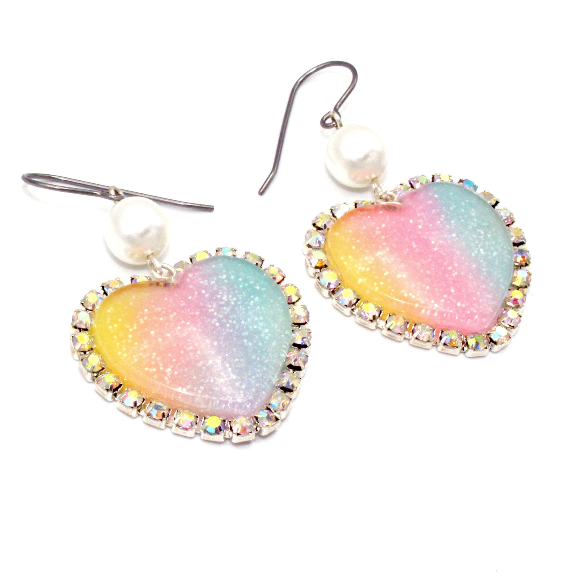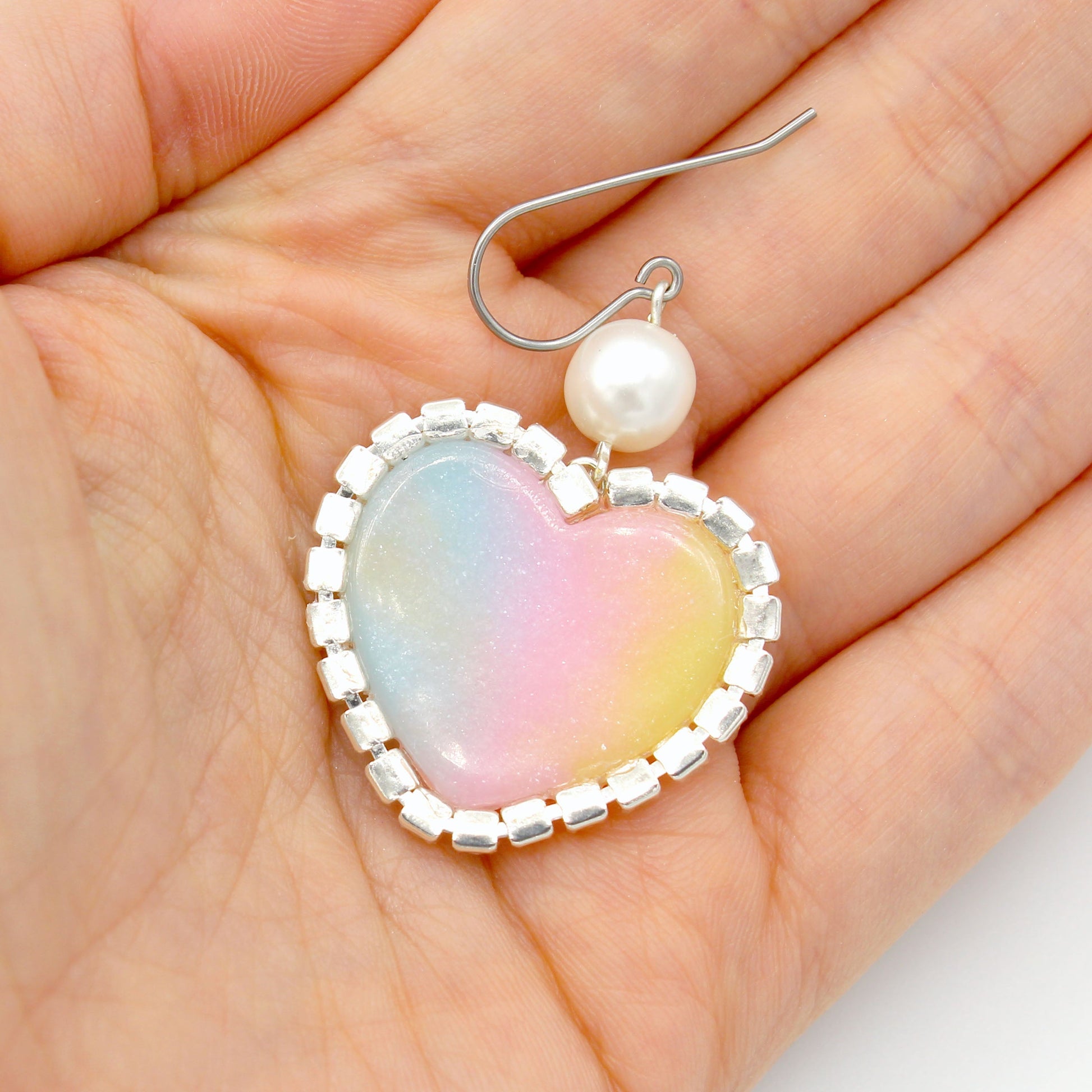 - Features gradient resin hearts with silver glitter embedded (*note that every heart is slightly different since colors were poured per each pendant)