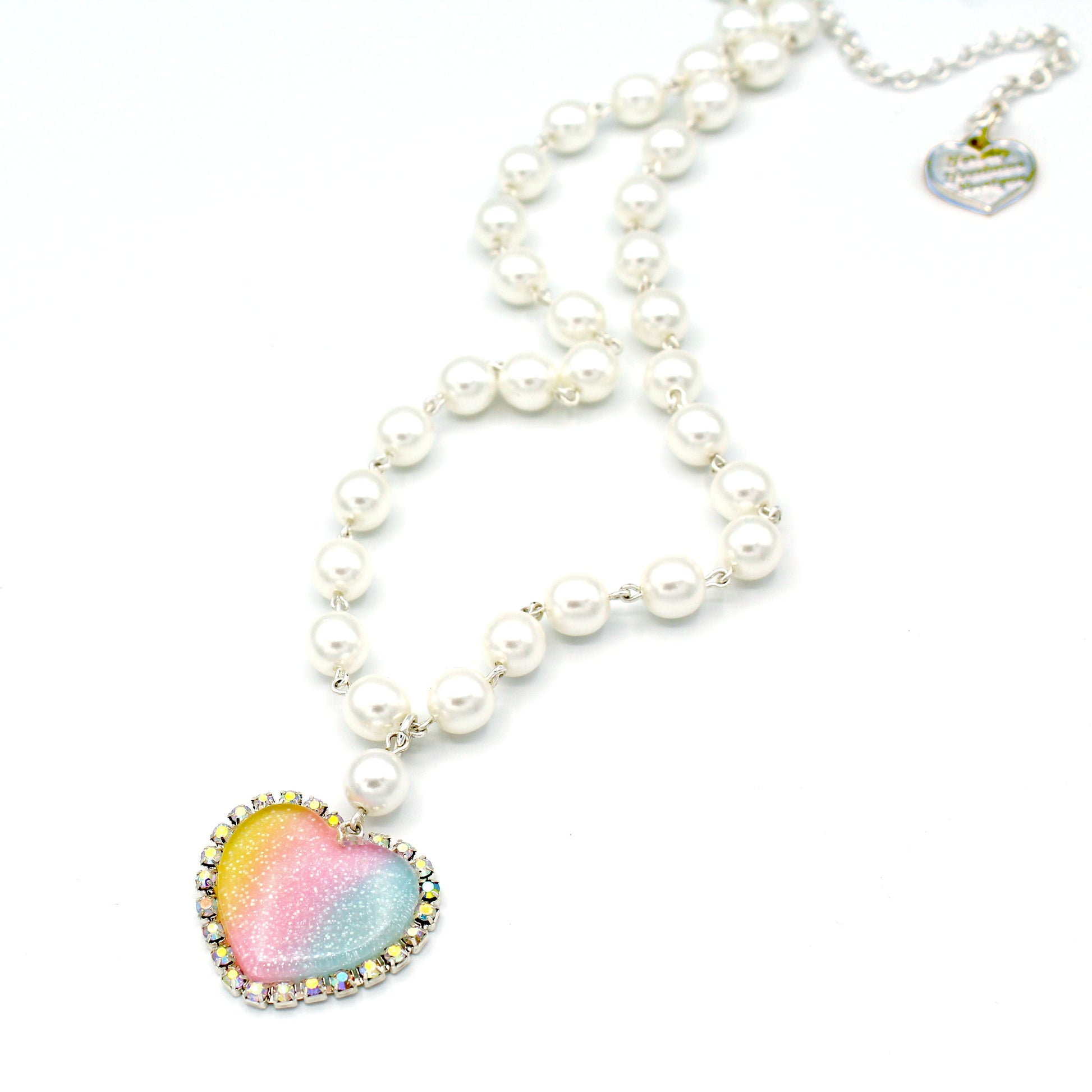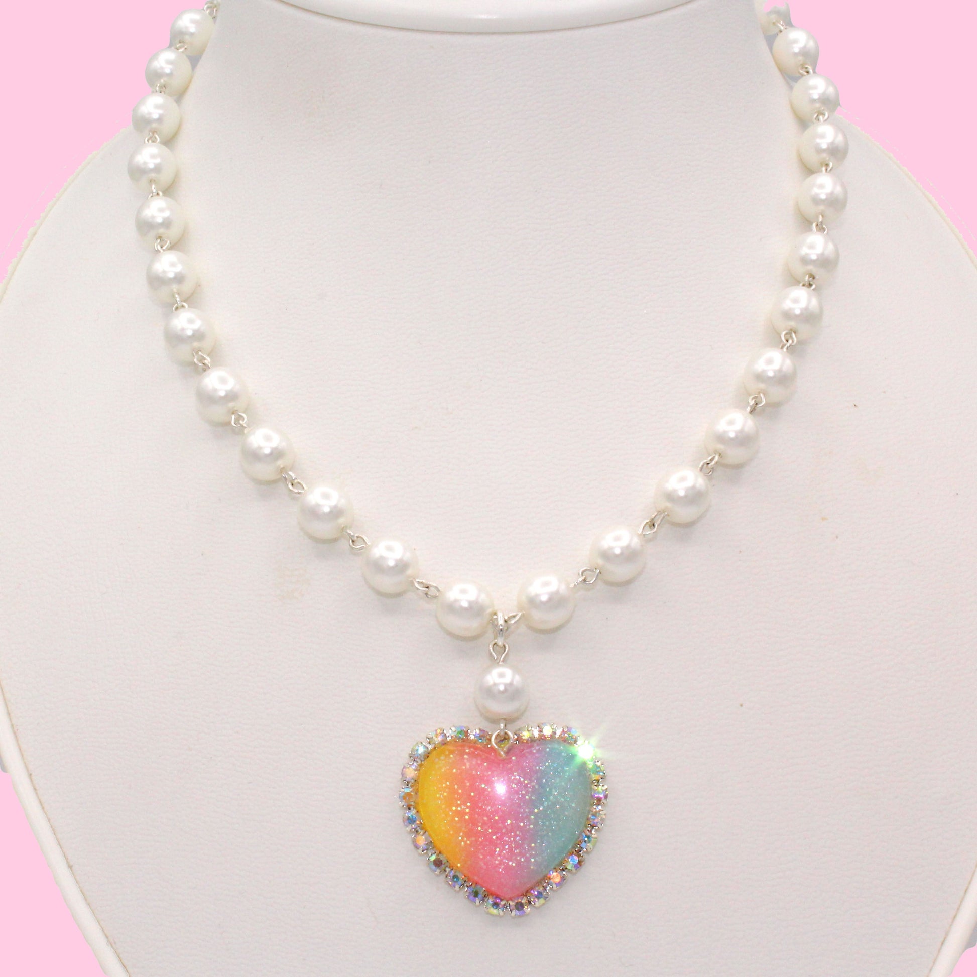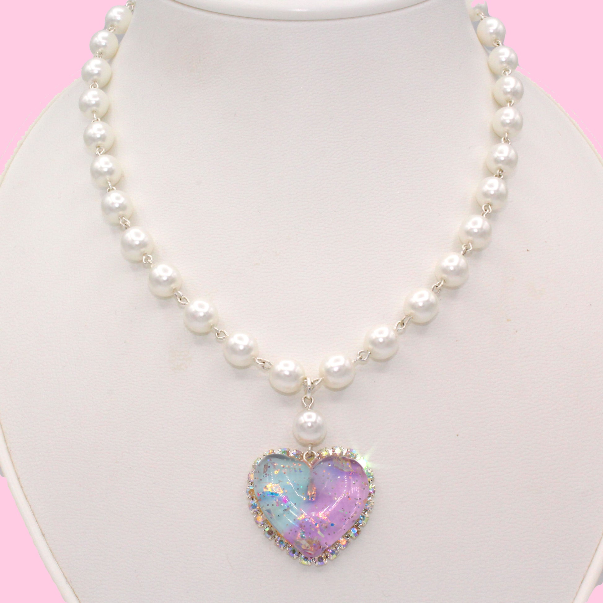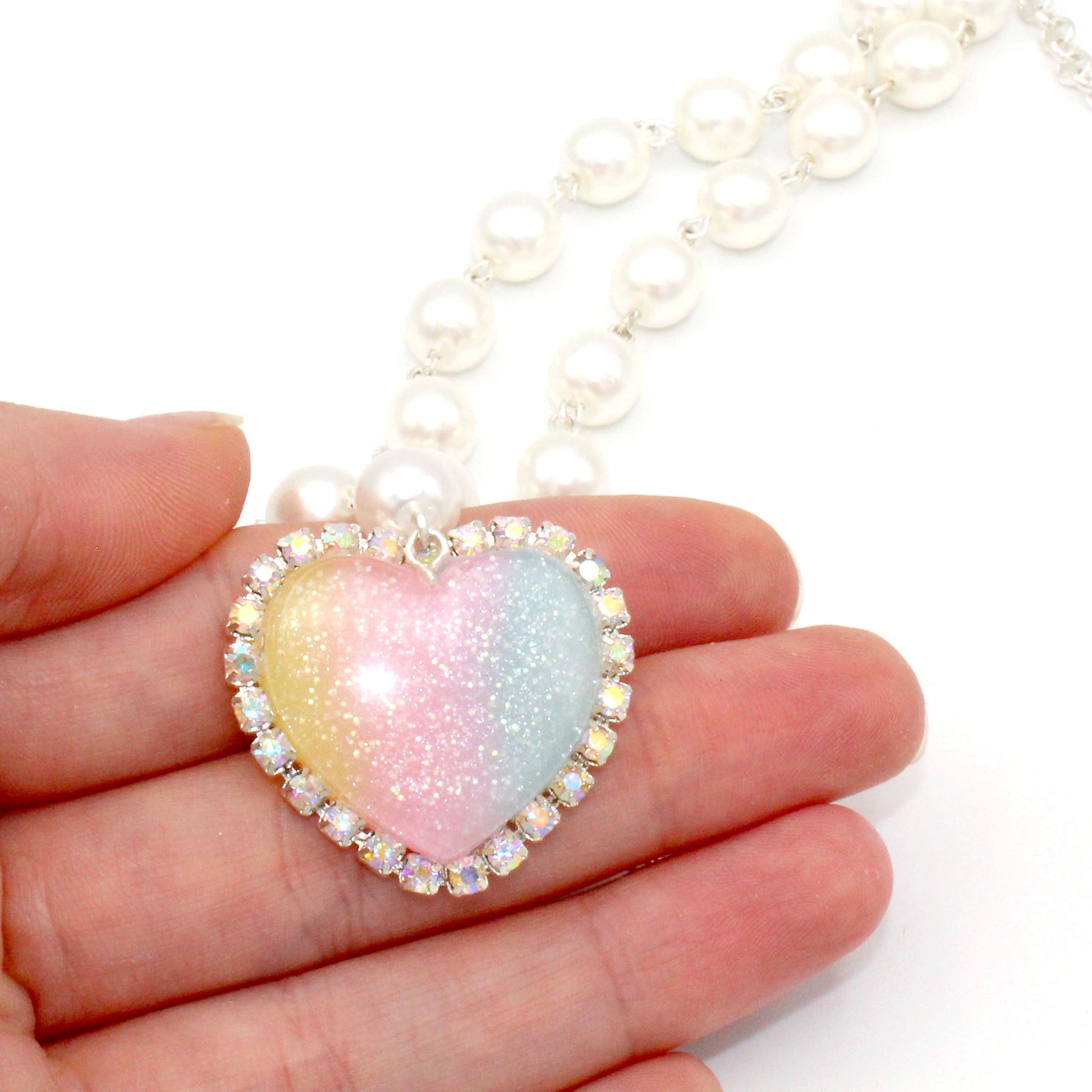 - Features a gradient resin heart pendant with silver glitter embedded (*note that every heart is slightly different)