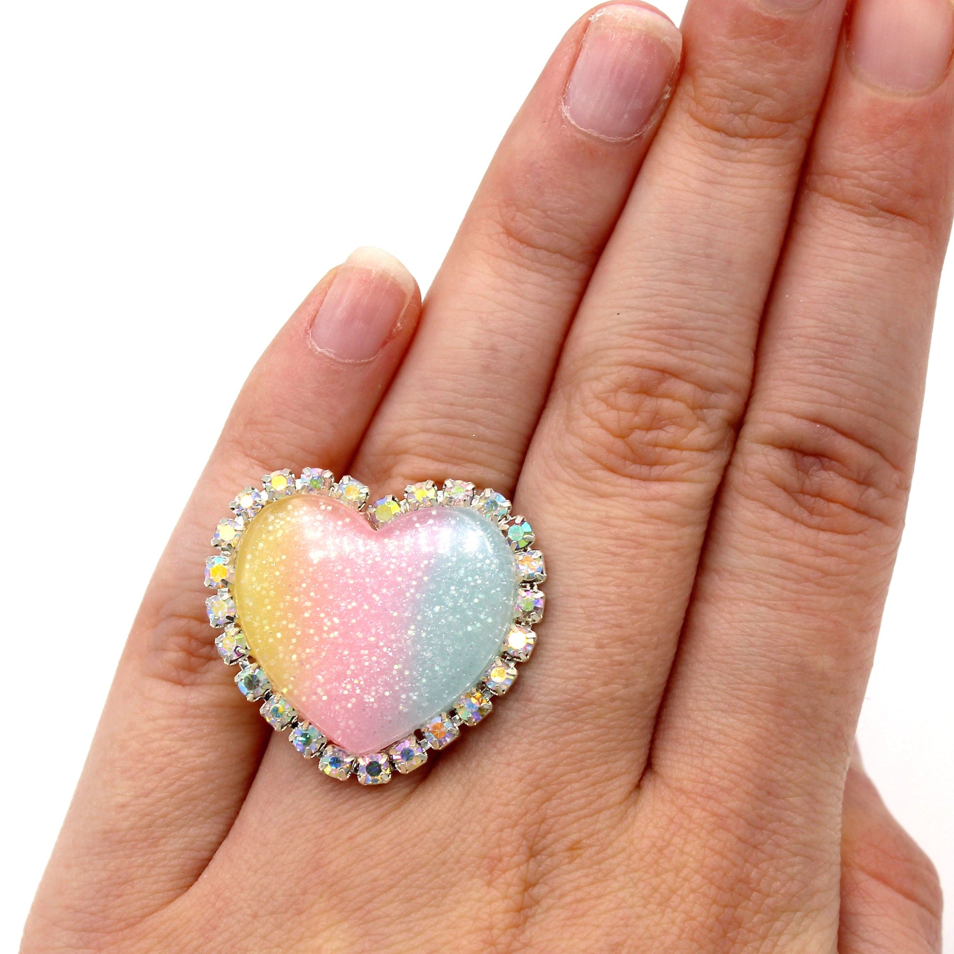 - Features a gradient resin heart with silver glitter embedded (*note that every heart is slightly different since colors were hand poured per each heart)